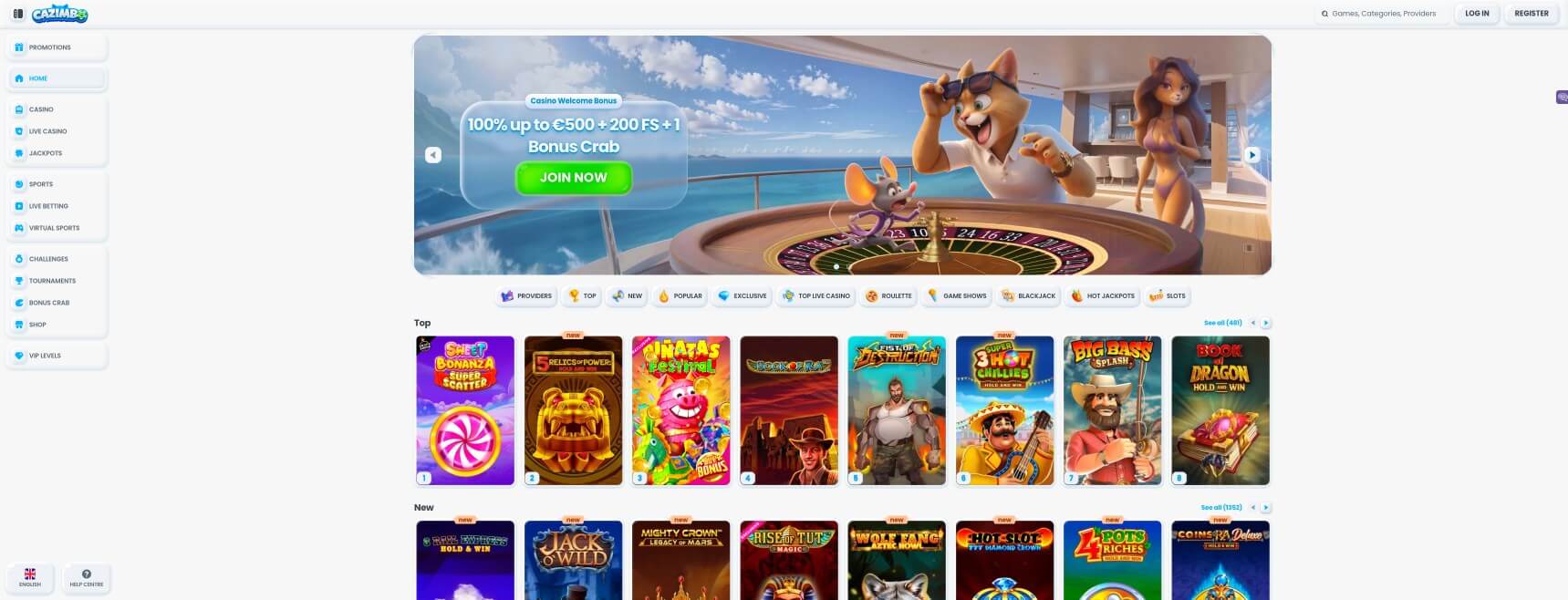 In terms of bonuses, Cazimbo also excels, attracting new users with a 100% up to €500 + 200 free spins pack. This bonus can be claimed with a payment of €20 on your first deposit. The rollover requirements are 35x bonus + deposit and 40x free spins winnings. Other great offers at Cazimbo include cashback deals like 25% up to €200 on live casino losses. On Fridays, players can also get a €10 no-deposit offer for hitting a specific combination in blackjack. An additional package of €700 + 50 free spins is available on weekends.