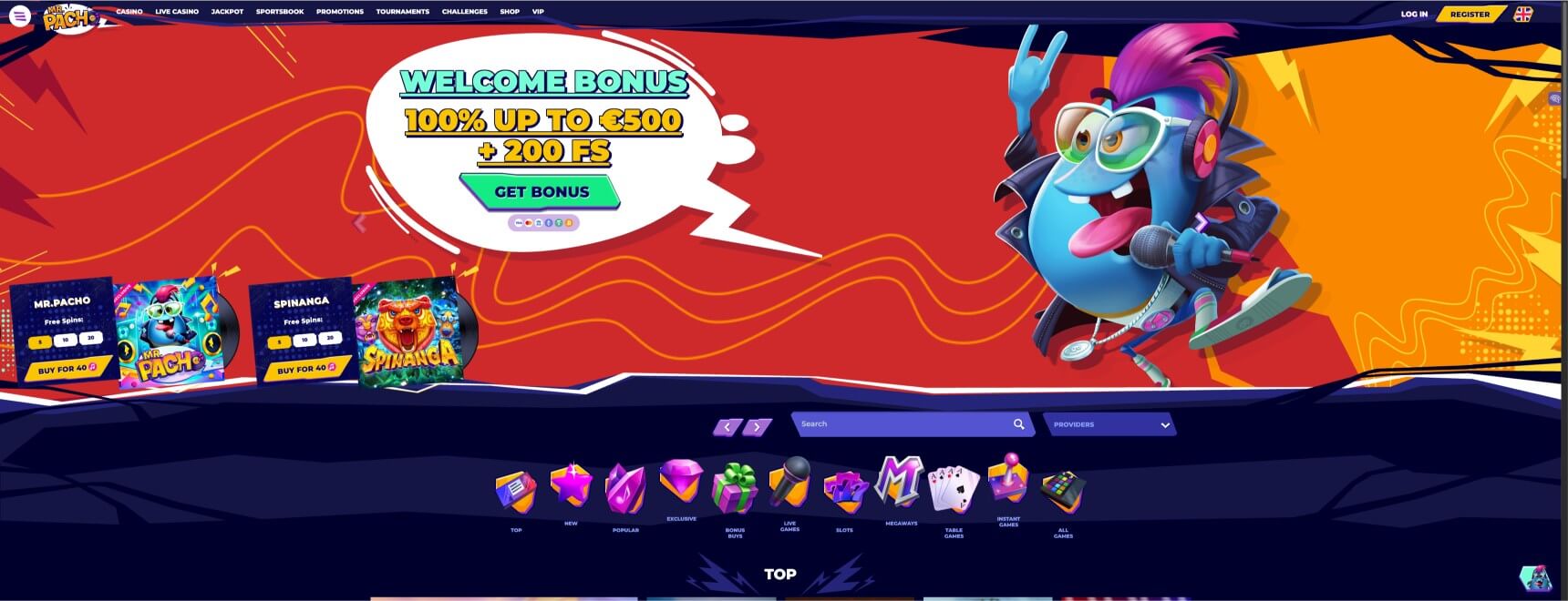 At the moment, Mr Pacho is loaded with an impressive collection of over 13,000 games. Its slots collection alone contains over 10,000 titles while the live casino section has 350+ titles. Other categories like scratchcards, table games, instant wins, and crash games are also available.