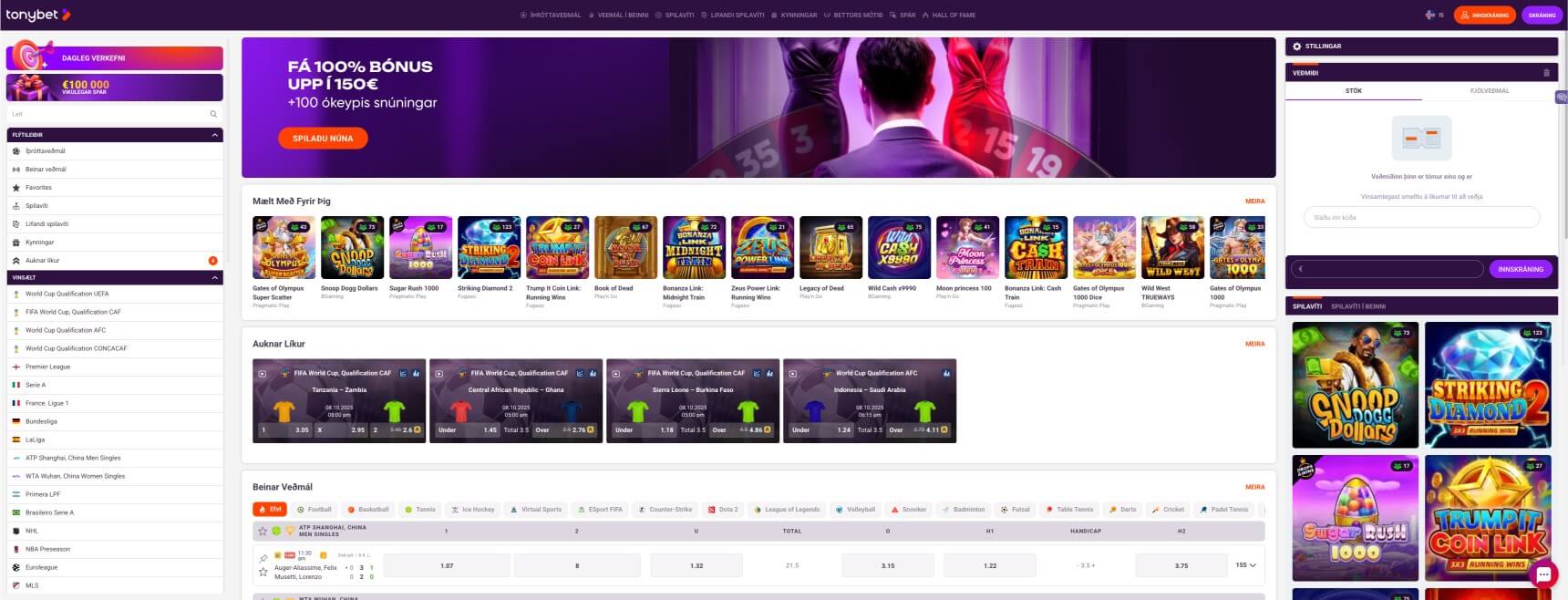 Founded in 2013, TonyBet is another exceptional online casino that was designed with Icelanders in mind. The website, which is licensed and regulated by the Estonia Tax and Customs Board, provides memorable sessions with its special offerings.